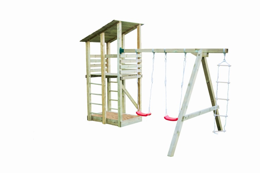 Komea leikkiteline tornilla painekyllästetystä puusta