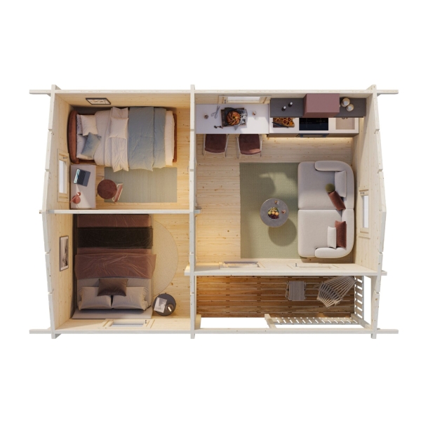 Mökki Sander 21,5+3,7 m² 3 huonetta, 70 mm seinä