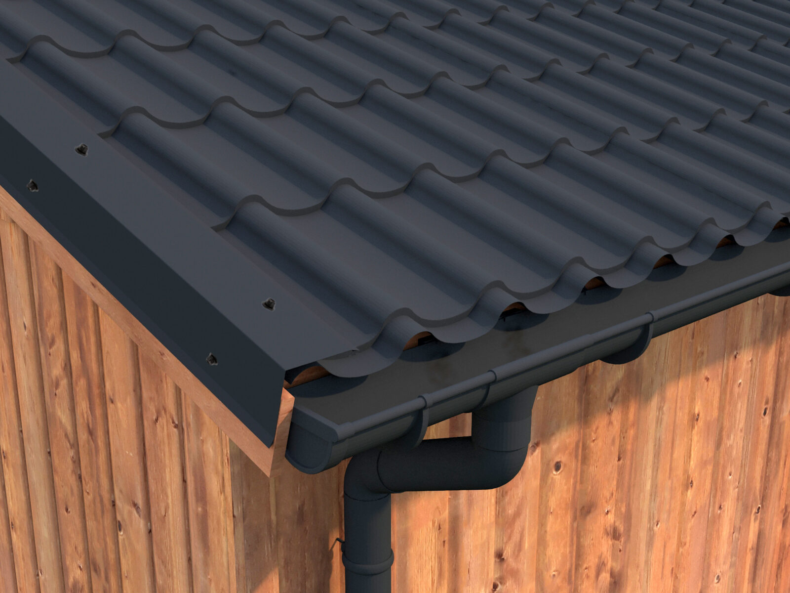 - toimituksessa peltikatto sadevesijärjestelmällä (väri RR33, PUR pinta)