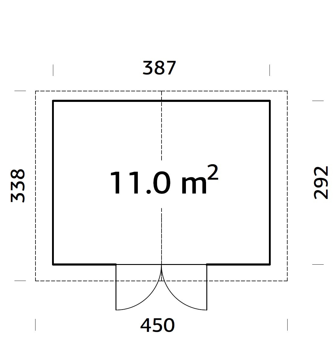 Pihamaja Tia 11,0m² painekyllästetty ja peltikatolla
