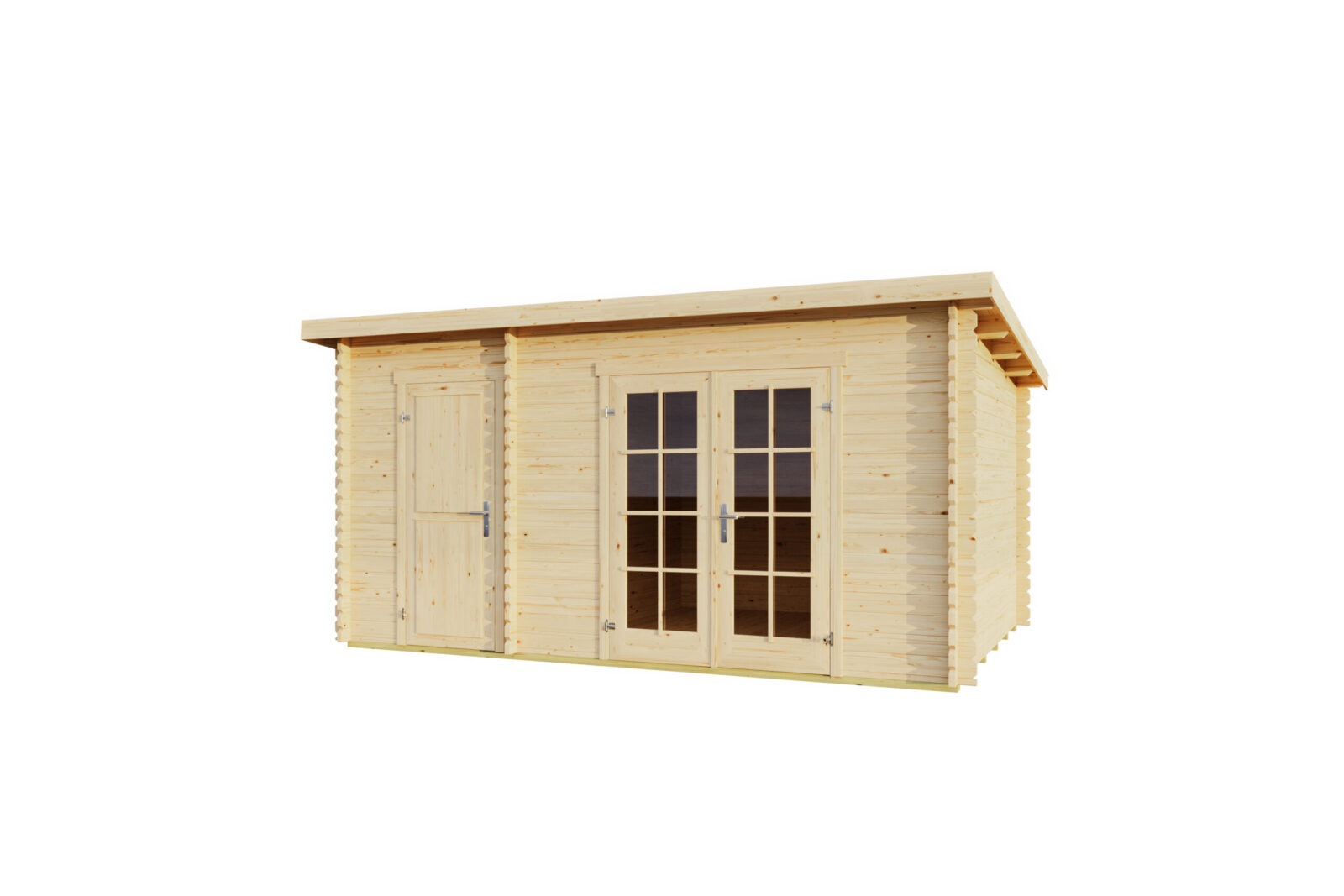 Ulkoseinämitat: 425 x 280 cm. Räystäskorkeudet 222 cm ja 200 cm.