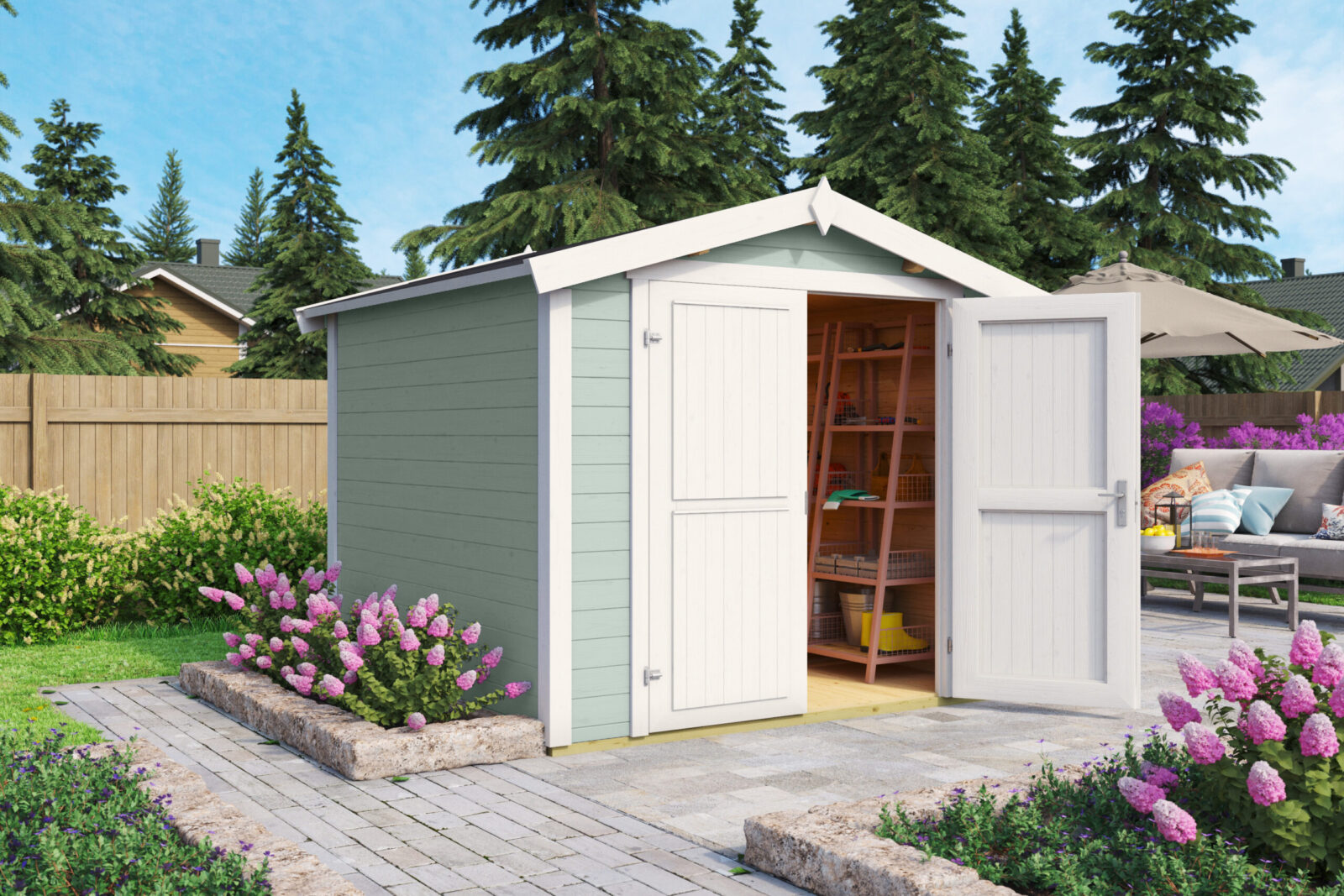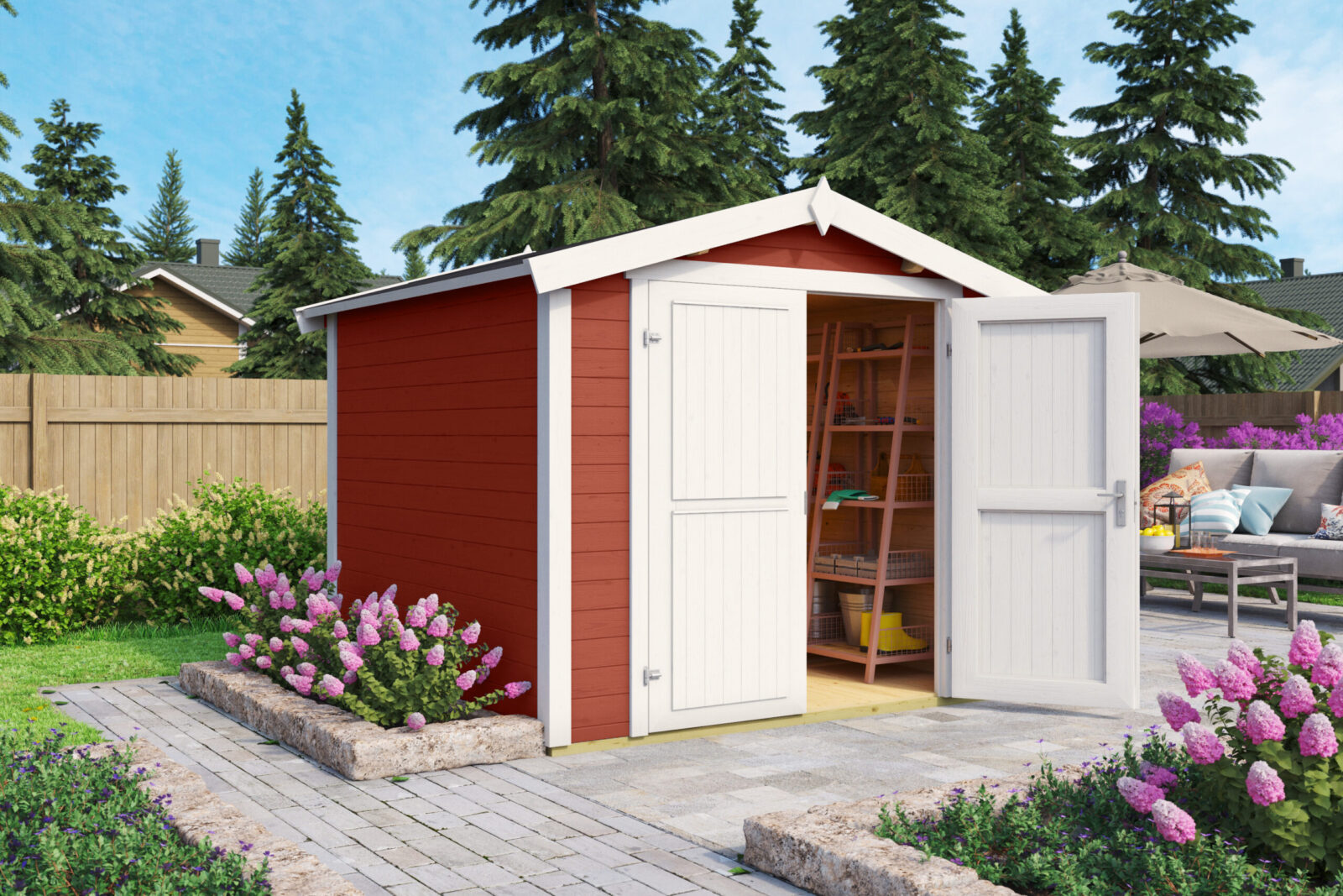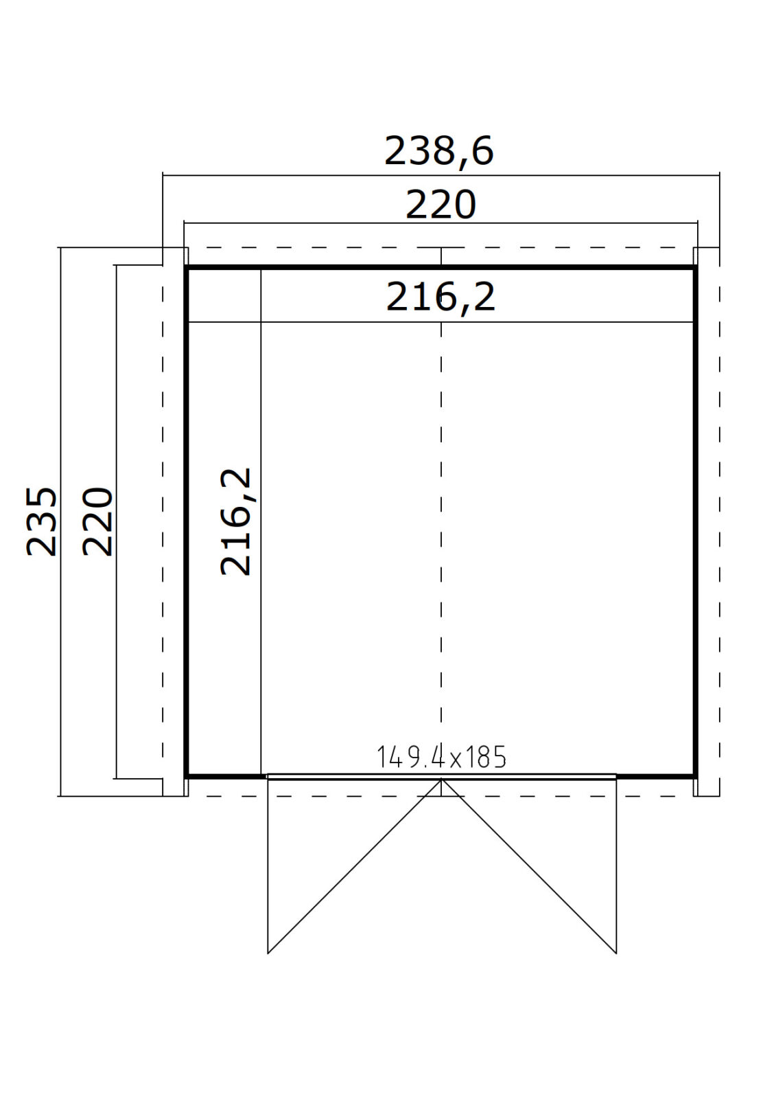 Mitat: 220 x 220 cm. Harjakorkeus 222 cm.
