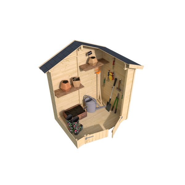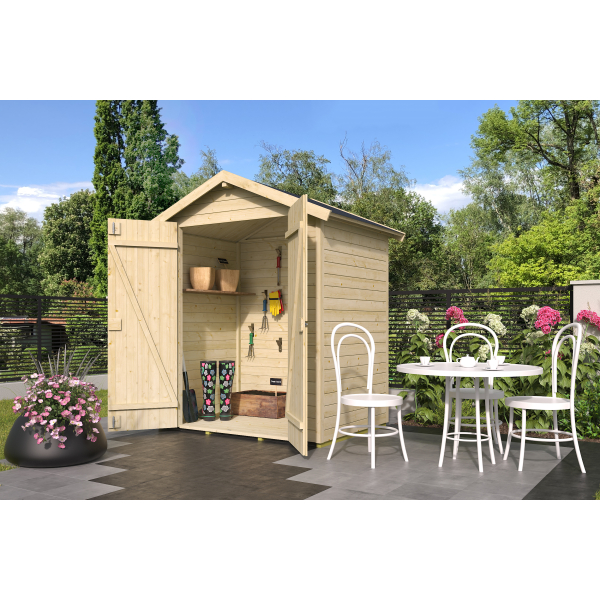 Harjakattoinen Kena on pieni pihavaja tärkeimmille pihatarvikkeille.