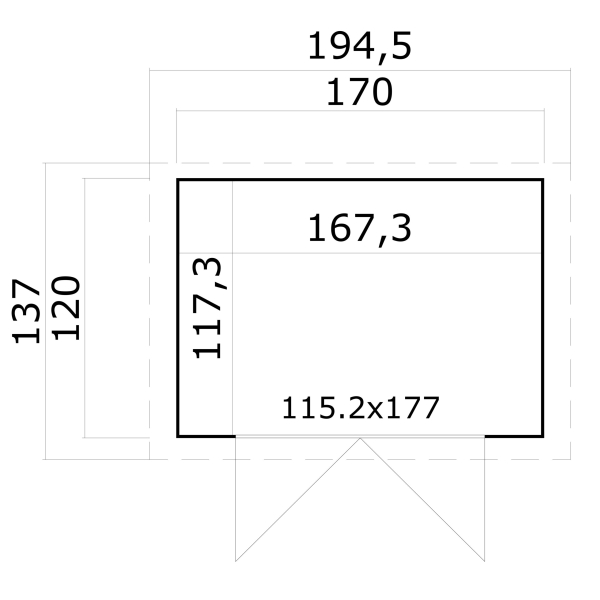 Ulkoseinämitat: 120 x 170 cm.