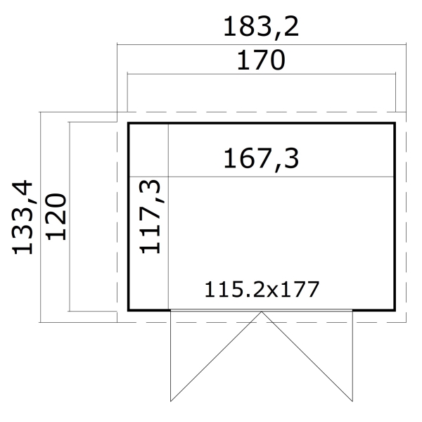 Ulkoseinämitat: 120 x 170 cm.