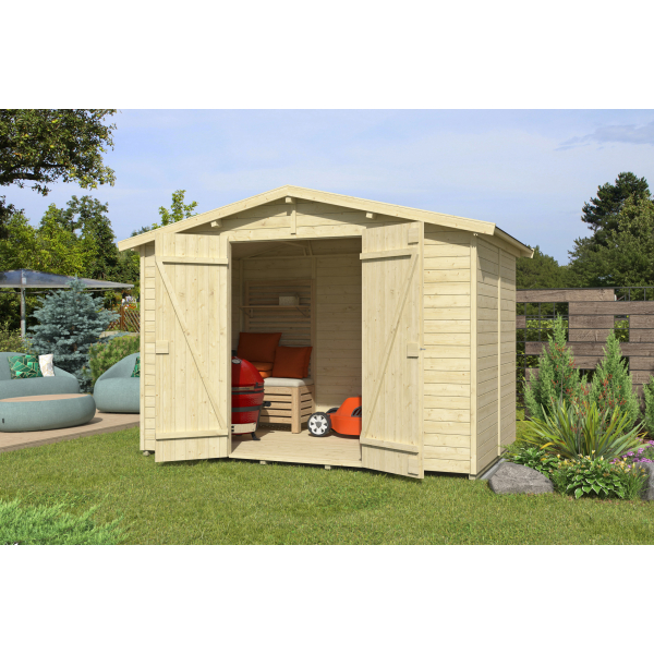 Harjakattoinen Kena on pieni pihavaja tärkeimmille pihatarvikkeille.
