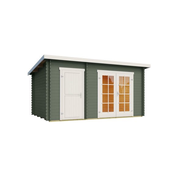 Ulkoseinämitat: 380 x 250 cm. Räystäskorkeudet 222 ja 200 cm.