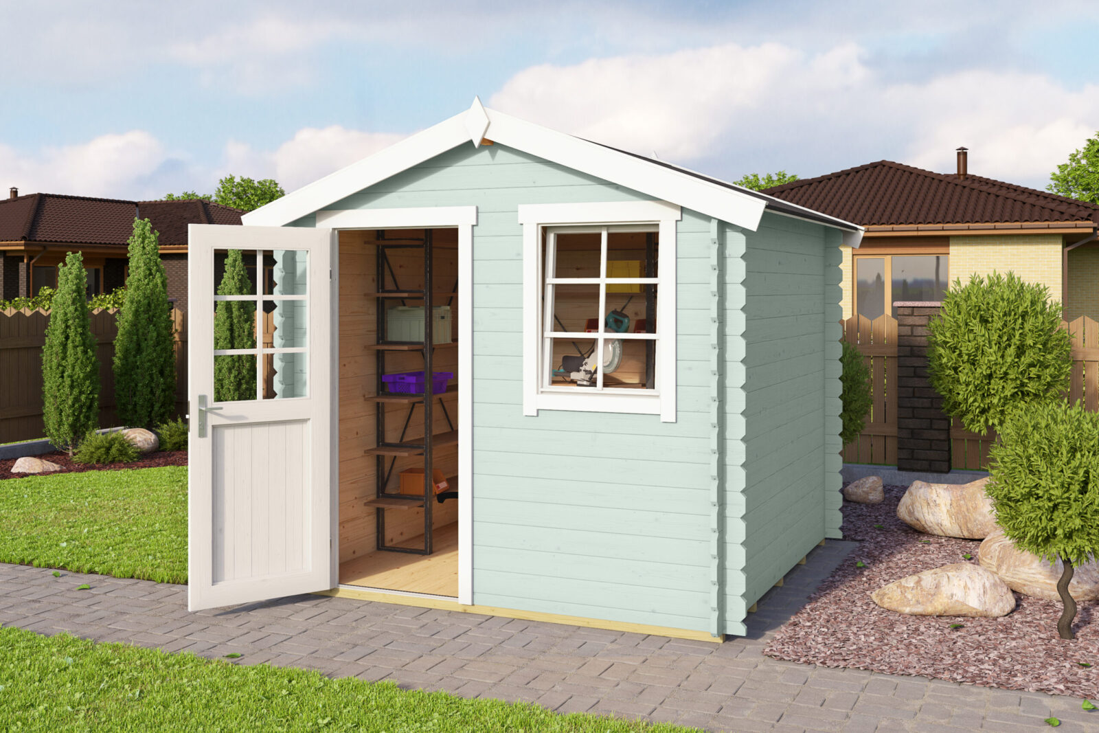 Ulkoseinämitat: 230 x 230 cm. Harjakorkeus 234 cm.