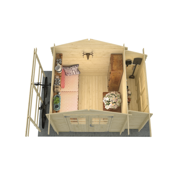 Pihavarasto Vilano 4 m² + sivukatos ja työkalukaappi