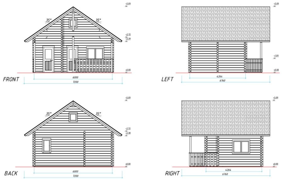 Ulkoseinämitat: 6,0 x 4,3 m.