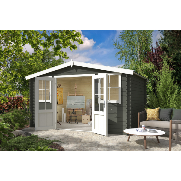 Ulkoseinämitat: 376 x 292 cm. Harjakorkeus 234 cm, räystäskorkeus 194 cm.