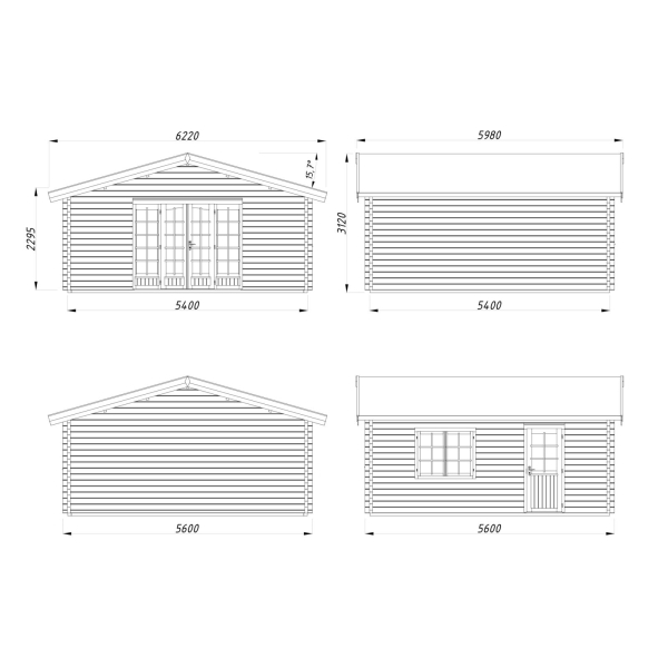 - harjakorkeus 312 cm, räystäskorkeus 230 cm