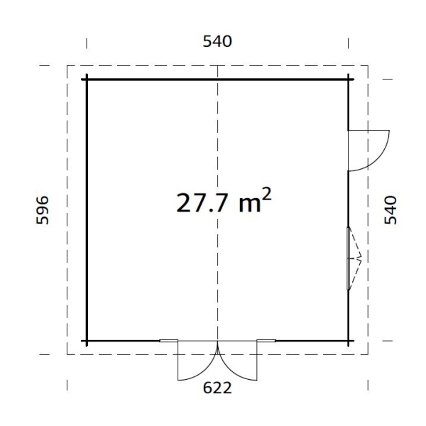 Ulkoseinämitat: 5,4 x 5,4 m.