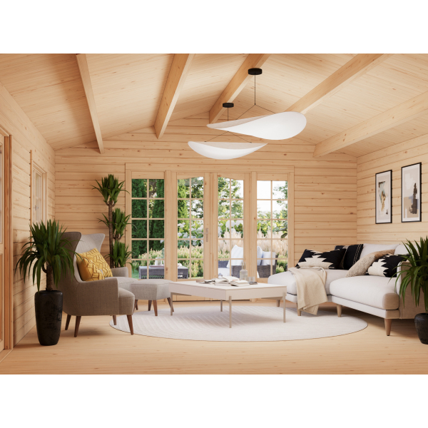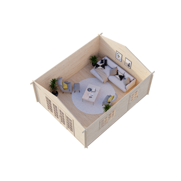 Valoisa Ireen on tilava ja tyylikäs mökki. Mökissä on lasitettu tuplaovi ja oven molemmilla puolilla korkeat lasi-ikkunat, joista pääsee paljon valoa sisään. Kahdella uloskäynnillä ja lisäikkunalla varustettu pihamökki on rakennettu 44 mm paksusta hirrestä ja sisältää 19 mm paksun lattian.